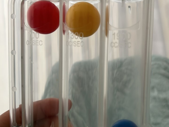 오후 4시에 시작된 수술은 5시 30분 정도에 끝났고 회복실에서 병실로 저녁 7시에 들어왔는데 3시간 뒤인 저녁 10시부터 다음날 새벽인 6시까지 물을 500ml만 먹으라고 합니다. 그리고 입원 전에 미리 사 왔던 폐활량호흡기를 많이 연습하지 않으면 폐렴과 가스통이 심할 거라고 틈나는 대로 불라는 미션도 받습니다.