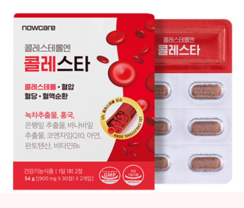 나우케어의 콜레스타는 홍국이 1일 최대 섭취량인 8mg이 함유되어 있습니다. 콜레스테롤 성분을 함께 감소시켜 주는 복합 기능성 원료인 카테킨이 300mg , 혈압을 개선해 주는 성분인 코큐텐이 100mg, 혈당을 낮추어 주는 성분인 바나바잎 1.3mg , 혈액순환에 도움이 되는 성분인 은행잎 36mg가 함께 들어가 있는 식약처에서 인증받은 건강기능 식품입니다. 제품 불만족시 100% 환불이 가능하다고 하는 점에서 나우케어의 자부심을 볼 수 있습니다. 현재 판매량 1위의 제품으로 합리적인 가격에 구매가 가능합니다.