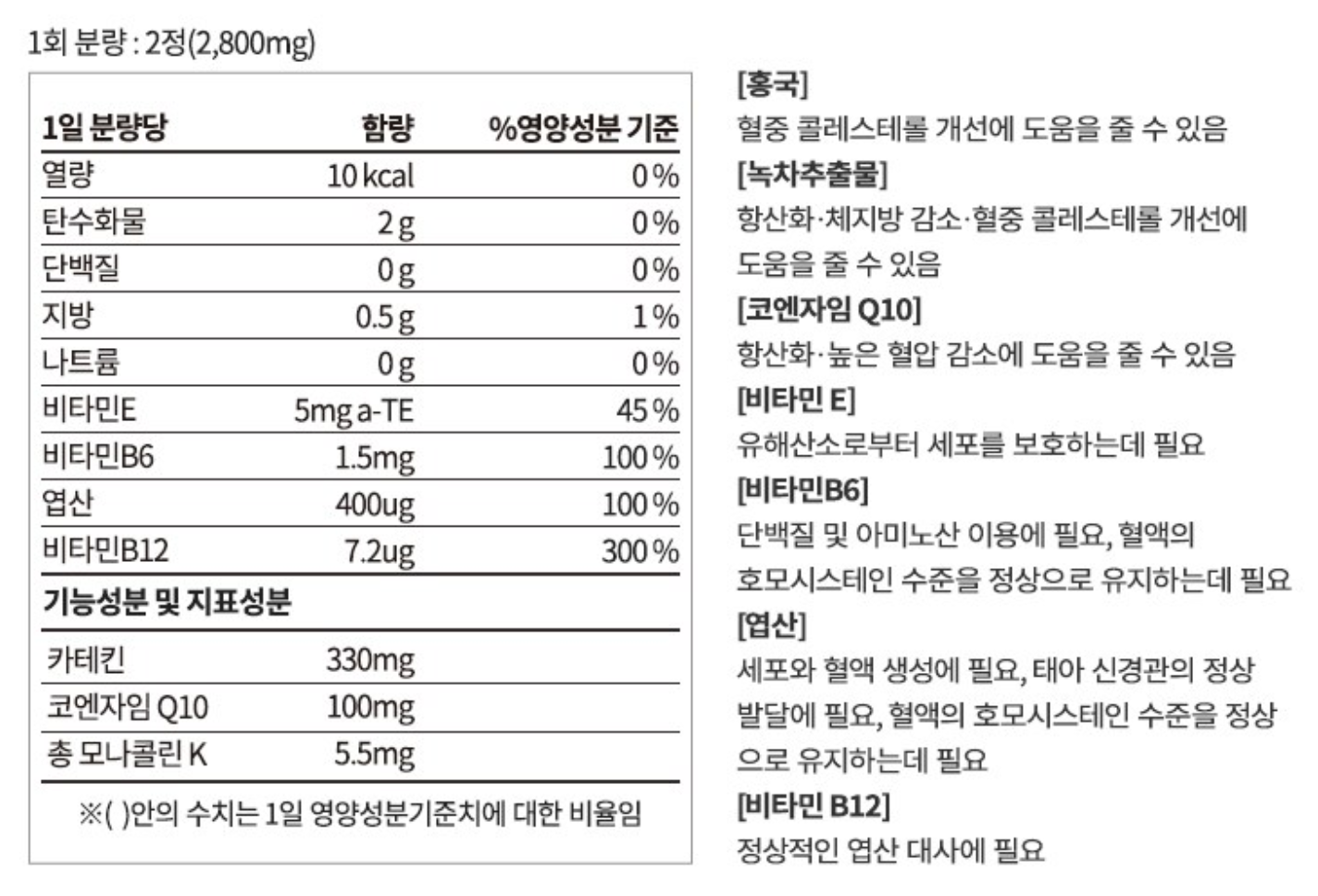 높은 콜레스테롤을 개선해주는데 뛰어난 원료인 홍국은 식약처에 등록된 콜레스테롤 원료 중 가장 뛰어난 재료로, 홍국의 주된 성분은 모나콜린 K인데요. 모나콜린 K의 1일 최대섭취량은 4~8mg으로 , 원료가 비싼 홍국은 영양제는 주로 4mg이 함유되어 있습니다.