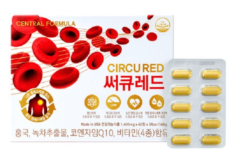 센트럴포뮬러의 써큐레드 역시 콜레스테롤 감소에 도움이 되는 성분인 홍국 5.5mg , 카테킨 330mg, 코큐텐이 100mg 함유되어 있는 제품입니다. 그 외 다른 성분들도 함께 함유되어 있습니다. 가장 주된 기능인 콜레스테롤 감소에 도움이 되는 성분들이 앞서 적은 제품들보다 적은 종류로 함유되어 있으나, 워낙 고가인 홍국의 제품들을 비교해 봤을 때 적당한 가격을 지불하고 꾸준히 먹기에 좋은 제품입니다.