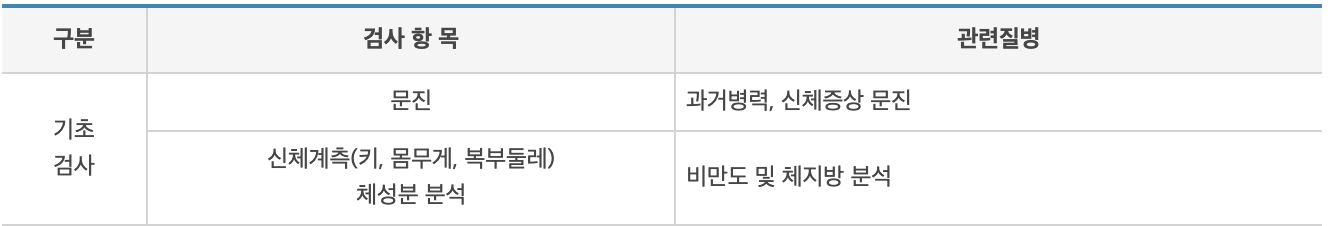 기초 검사는 건강검진을 예약하면 기본으로 포함되는 항목으로, 나누어주는 설문지와 키와 체중, 체성분을 분석하여 생활습관 및 체지방을 분석하여 줍니다.