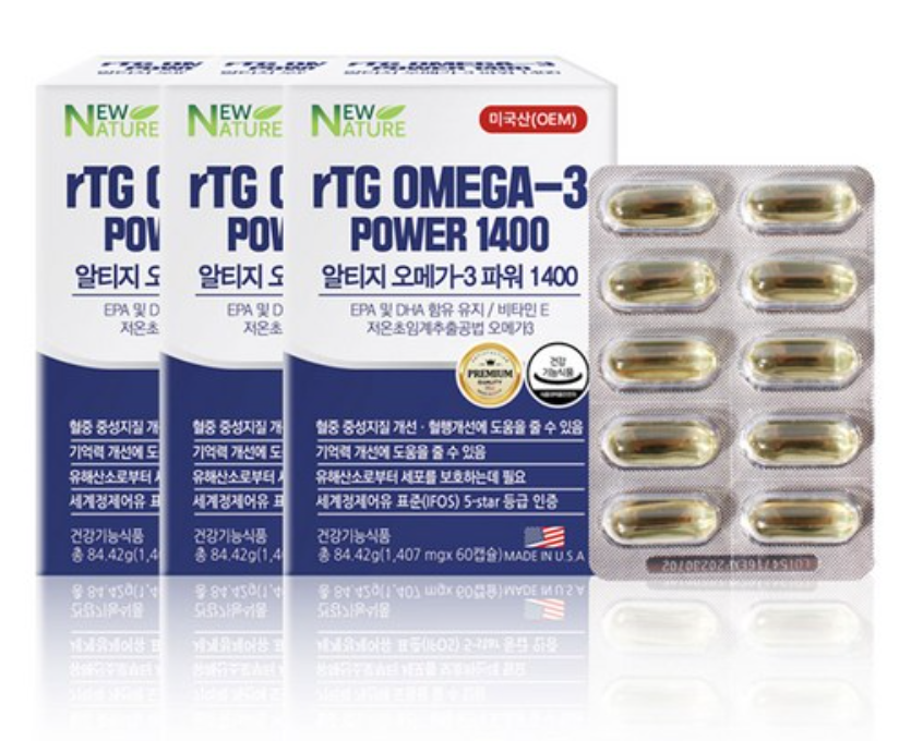 3.rTG (3세대)rTG제품은 순도 95% 이상의 흡수율이 높고 생체이용률이 높은 완성도 높은 오메가 3입니다.